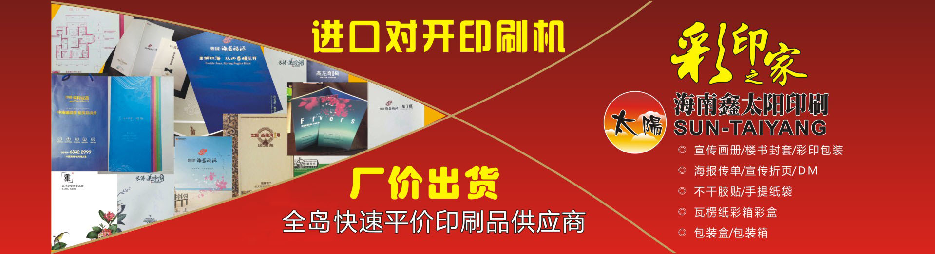 海南鑫太陽(yáng)印刷業(yè)有限公司成立于2002年,主要從事生產(chǎn)海報(bào)畫(huà)冊(cè)、傳單簡(jiǎn)介、精品包裝、掛歷臺(tái)歷、不干膠貼、手提紙袋、瓦楞紙包裝箱和彩箱紙盒等,公司有日本、德國(guó)等對(duì)開(kāi)及四開(kāi)高速彩色印刷機(jī)、自動(dòng)膠裝機(jī)、自動(dòng)鎖線(xiàn)機(jī)、自動(dòng)復(fù)膜機(jī)等先進(jìn)的自動(dòng)化設(shè)備,業(yè)務(wù)涉及商業(yè)、地產(chǎn)、水產(chǎn)、食品、農(nóng)林、藥品、化工、航空等行業(yè)的彩印包裝及宣傳印刷品。我公司另外還設(shè)有紙箱包裝廠(chǎng),可以更好地為客戶(hù)配套生產(chǎn)各種檔次級(jí)別的瓦楞紙箱彩盒、普通紙箱紙盒、精裝禮盒等大型產(chǎn)品包裝,產(chǎn)品范圍包括花炮箱、飲料箱、食品箱、魚(yú)箱、花箱等。